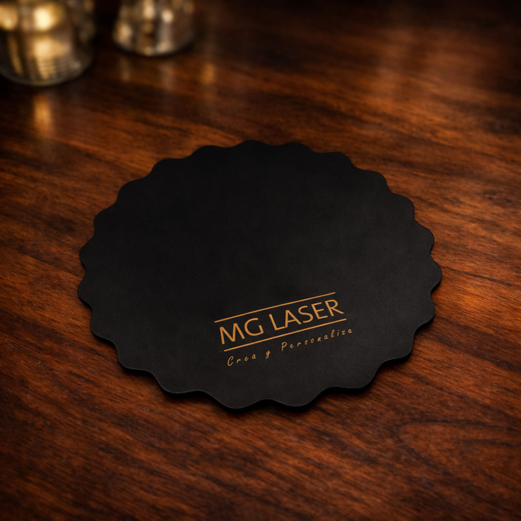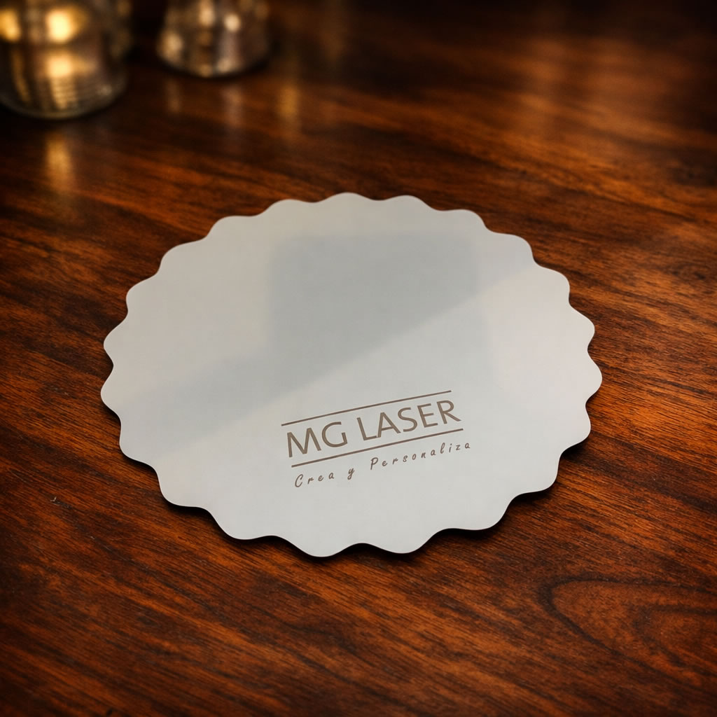 - Base de presentación de 20 cm con borde ondulado decorativo, fabricada en MDF de 3 mm con excelente estabilidad.